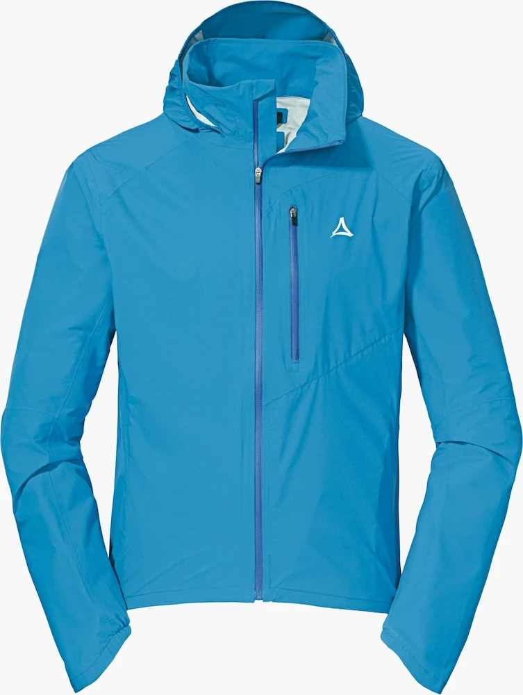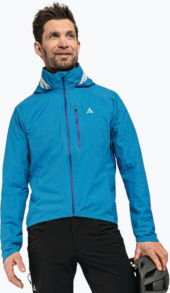 Bei Reisen mit dem Rad muss Mann auf jedes Wetter gefasst sein, um ungewollten Überraschungen entgegenzuwirken. Plötzlichen Regenschauern wird mit der Schöffel Radjacke getrotzt. Das 2,5-Lagen VENTURI Material bietet dank 20.000 mm Wassersäule und verklebter Nähte absolute Wasserdichte. Zusätzlich bietet die Regenjacke von Schöffel eine herausragende Atmungsaktivität, wodurch das Körperklima ideal reguliert wird. Wer zusätzlich Ventilation benötigt, kann die Belüftungsreißverschlüsse betätigen. Des Weiteren besitzt die Schöffel Jacke eine verstellbare Kapuze, die auch im Kragen verstaut werden kann.