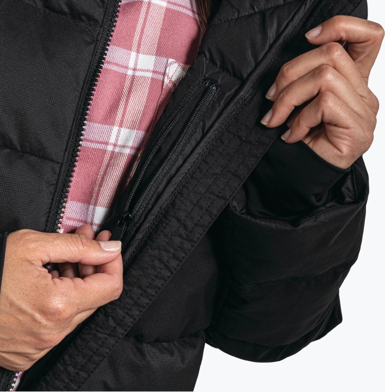 - Seitliche Eingriffstaschen mit Reißverschluss zu schließen
